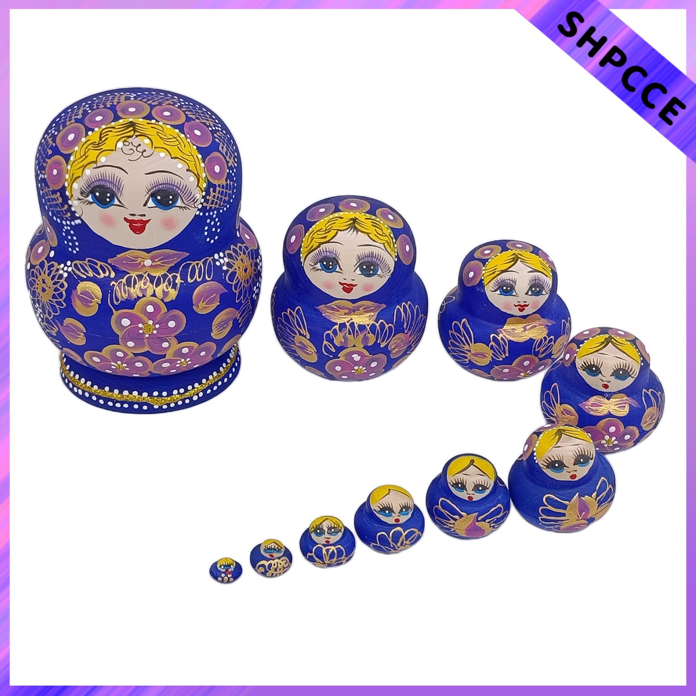 Classic blue russian nesting doll babushka matryoshka stacking dolls set 10 pieces xmas festival gift christmas decorations.